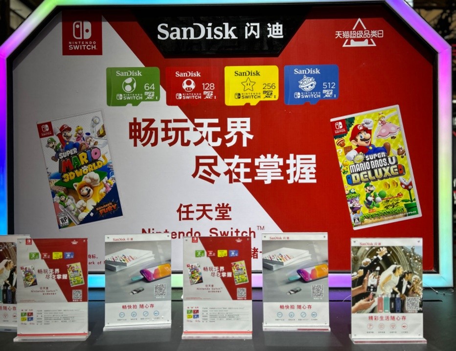 专为Nintendo Switch系统而设计的闪迪移动microSDXC Nintendo Switch专用存储卡提供64GB至512GB等多个容量选择,以及带有任天堂经典元素的卡面设计。其读取速度高达 100MB/s,写入速度高达90MB/s,满足流畅使用掌机所需。